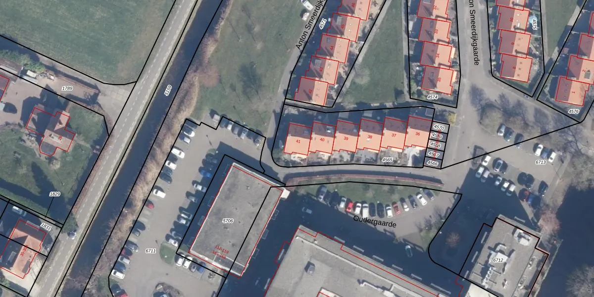 Het perceel waarop Anton Smeerdijkgaarde 41 staat heeft een oppervlakte van 985 m². Dit is een groot perceel. De perceeloppervlakte wordt geregistreerd door het Kadaster. Gedetailleerde informatie over de maten van dit perceel kunt u vinden in het rapport Kadastrale kaart met maatvoering van Anton Smeerdijkgaarde 41.