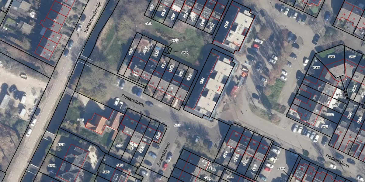 Dotterbloem 2 is gelegen op kadastraal perceel KTH00B5327. Deze kadastrale aanduiding is uniek en wordt gebruikt door het Kadaster om eigendomsrechten en andere zakelijke rechten vast te leggen. Het perceel maakt onderdeel uit van de kadastrale gemeente Kortenhoef.