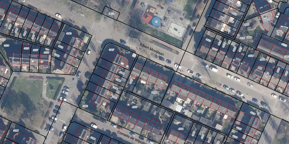 Elbert Mooijlaan 24 is gelegen op kadastraal perceel KTH00B5938. Deze kadastrale aanduiding is uniek en wordt gebruikt door het Kadaster om eigendomsrechten en andere zakelijke rechten vast te leggen. Het perceel maakt onderdeel uit van de kadastrale gemeente Kortenhoef.
