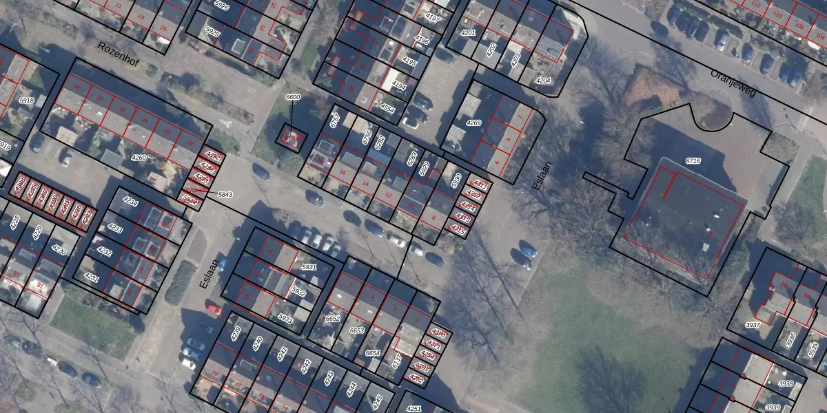 Het perceel waarop Eslaan 10 staat heeft een oppervlakte van 121 m². Dit is een middelgroot perceel. De perceeloppervlakte wordt geregistreerd door het Kadaster. Gedetailleerde informatie over de maten van dit perceel kunt u vinden in het rapport Kadastrale kaart met maatvoering van Eslaan 10.