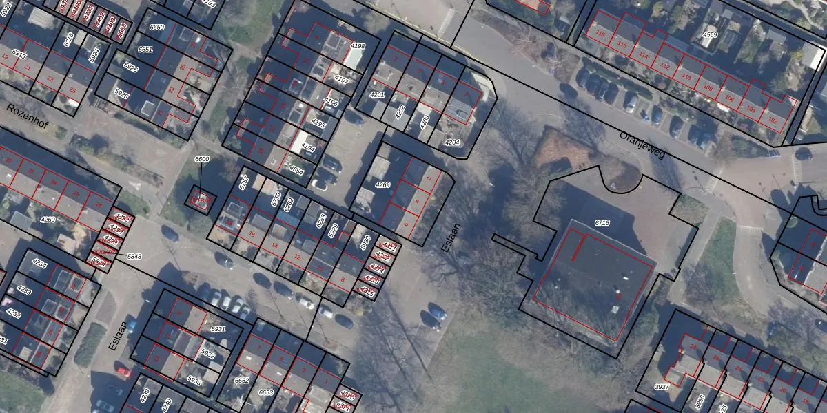 Het perceel waarop Eslaan 4 staat heeft een oppervlakte van 372 m². Dit is een groot perceel. De perceeloppervlakte wordt geregistreerd door het Kadaster. Gedetailleerde informatie over de maten van dit perceel kunt u vinden in het rapport Kadastrale kaart met maatvoering van Eslaan 4.