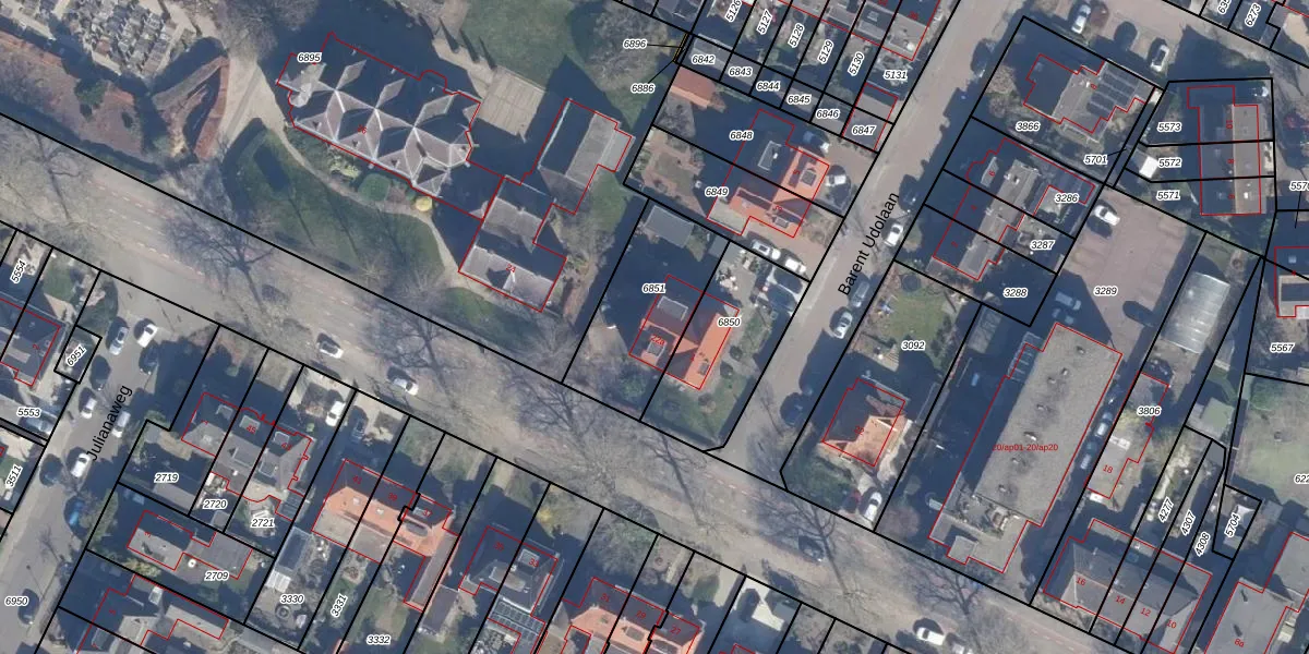 Gebruik de zoekbalk of klik op een perceel voor informatie over de adressen binnen dit perceel.