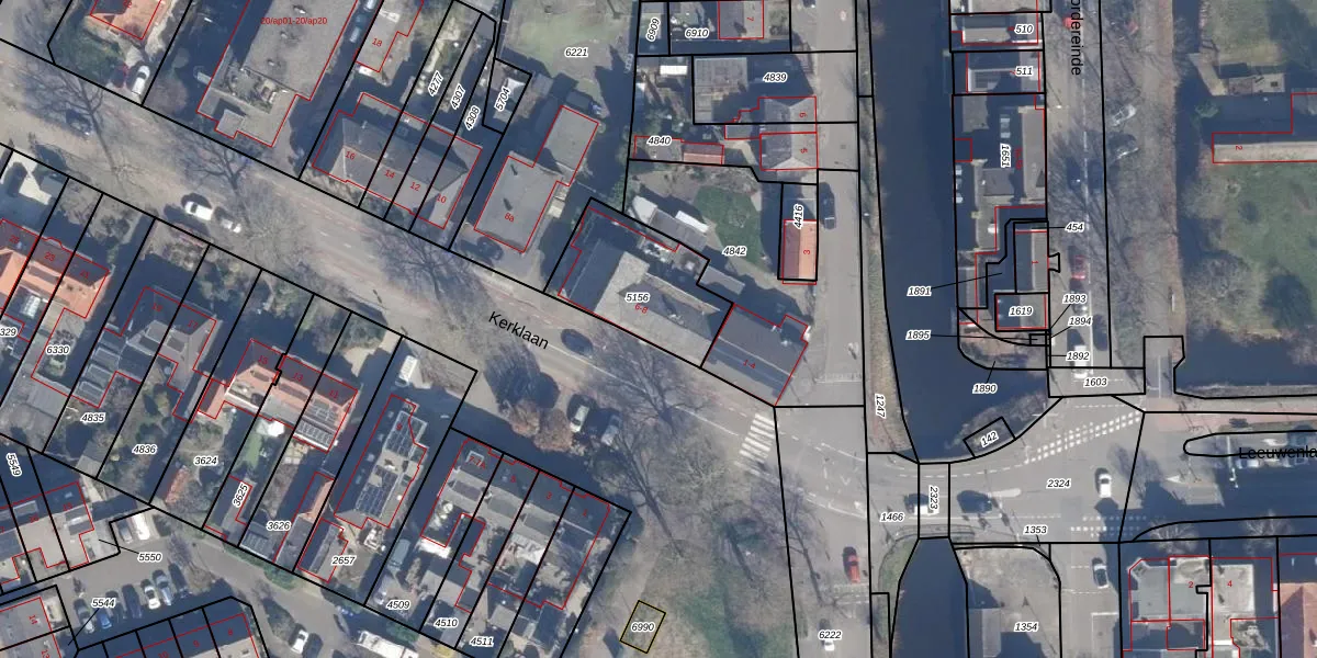Kerklaan 6 is gelegen op kadastraal perceel KTH00B5156. Deze kadastrale aanduiding is uniek en wordt gebruikt door het Kadaster om eigendomsrechten en andere zakelijke rechten vast te leggen. Het perceel maakt onderdeel uit van de kadastrale gemeente Kortenhoef.