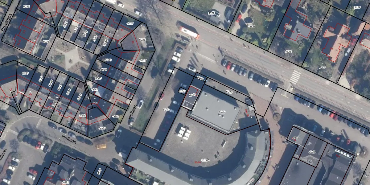 Het adres is gelegen op perceel 6753 in de sectie B en de kadastrale gemeente Kortenhoef. De kadastrale aanduiding is aldus KTH00-B-6753. Het perceel is kleiner dan gemiddeld in Kortenhoef. Het perceel is 12 m² groot, terwijl het gemiddelde ligt op 683,14 m². Het grootste perceel in de kadastrale gemeente is 7,2 ha. Het kleinste perceel heeft een oppervlakte van 0 m². Er zijn 20 adressen aanwezig op het perceel. De huidige grenzen van het perceel zijn digitaal in de Basisregistratie Kadaster (BRK) geregistreerd op 21-07-2016.