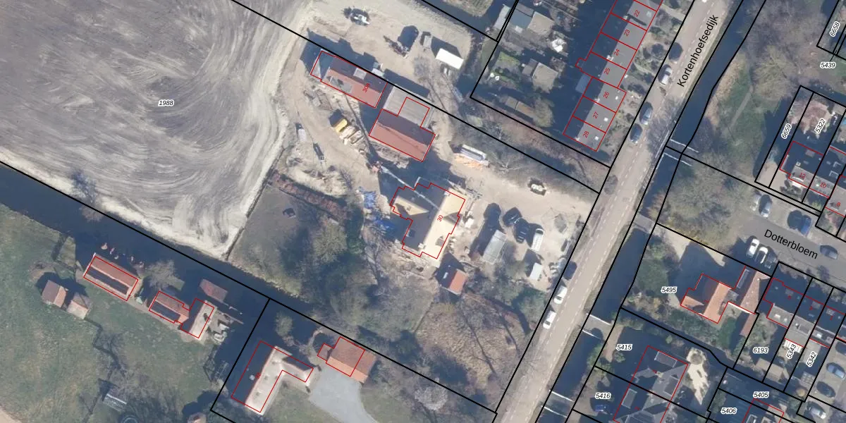 Het perceel waarop Kortenhoefsedijk 30 staat heeft een oppervlakte van 1,1 ha. Dit is een zeer groot perceel. De perceeloppervlakte wordt geregistreerd door het Kadaster. Gedetailleerde informatie over de maten van dit perceel kunt u vinden in het rapport Kadastrale kaart met maatvoering van Kortenhoefsedijk 30.