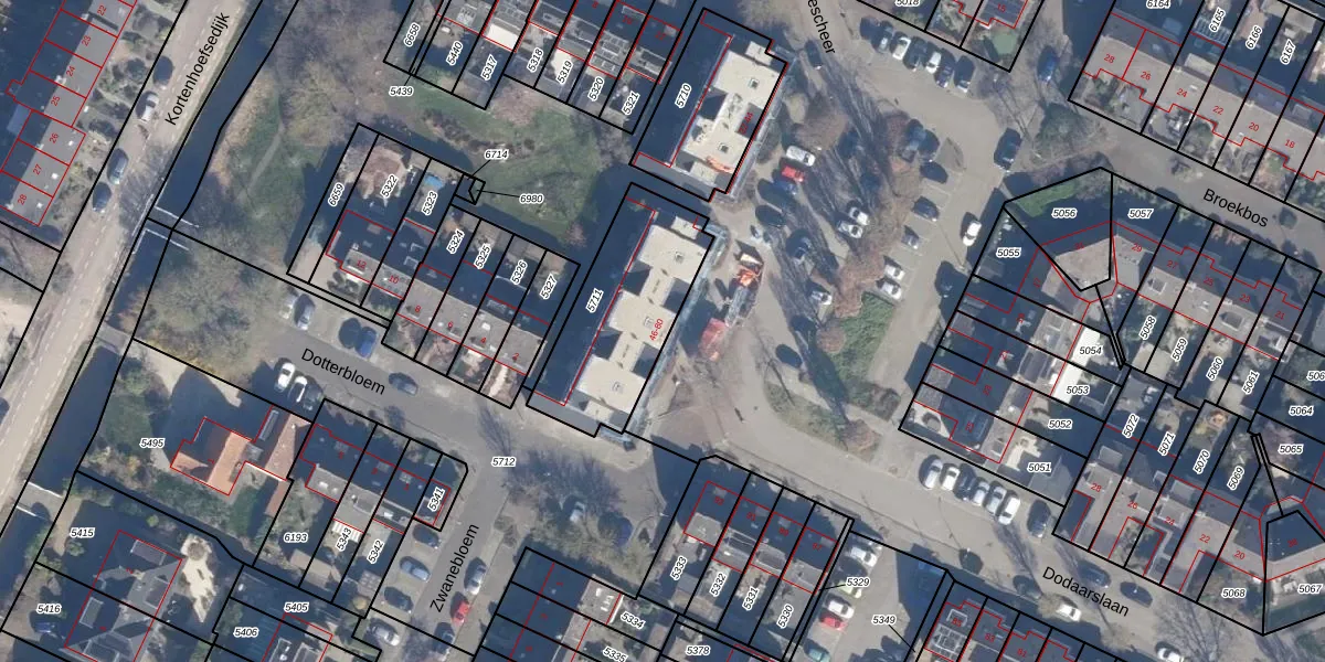 Het perceel waarop het adres ligt is KTH00-B-5711. De afkorting 'KTH00' staat voor kadastrale gemeente Kortenhoef. Het perceel is 540 m² groot. Dat is kleiner dan de gemiddelde perceeloppervlakte in Kortenhoef, dat op 683,14 m² ligt. De grootste perceeloppervlakte in de kadastrale gemeente is 7,2 ha. De kleinste oppervlakte bedraagt 0 m². Er zijn 18 adressen aanwezig op het perceel. In de Basisregistratie Kadaster (BRK) werden de grenzen van het perceel geregistreerd op 26-09-2011.