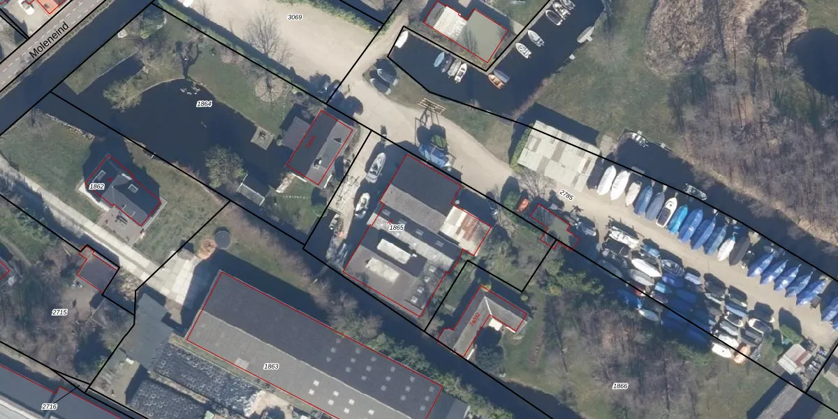 Het perceel waarop Moleneind 7-a staat heeft een oppervlakte van 1375 m². Dit is een zeer groot perceel. De perceeloppervlakte wordt geregistreerd door het Kadaster. Gedetailleerde informatie over de maten van dit perceel kunt u vinden in het rapport Kadastrale kaart met maatvoering van Moleneind 7-a.