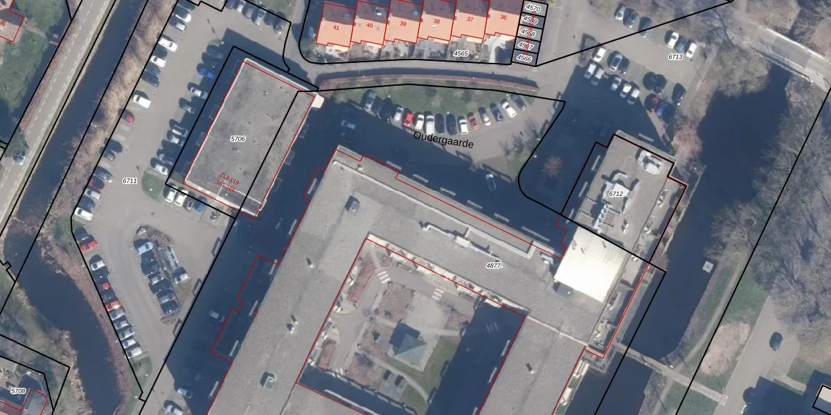 Het perceel waarop Oudergaarde 1-108 staat heeft een oppervlakte van 9365 m². Dit is een zeer groot perceel. De perceeloppervlakte wordt geregistreerd door het Kadaster. Gedetailleerde informatie over de maten van dit perceel kunt u vinden in het rapport Kadastrale kaart met maatvoering van Oudergaarde 1-108.