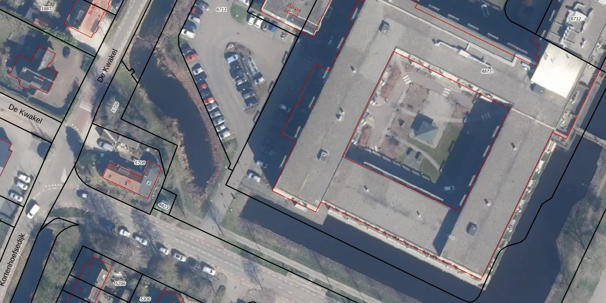 Het perceel waarop het adres ligt is KTH00-B-4877. De afkorting 'KTH00' staat voor kadastrale gemeente Kortenhoef. De gemiddelde perceeloppervlakte in de kadastrale gemeente Kortenhoef is 683,39 m². Dit perceel is met zijn 9365 m² dus groter dan gemiddeld. Het kleinste perceel in de kadastrale gemeente is 0 m² groot. De grootste perceeloppervlakte is 7,2 ha. Op het perceel liggen in totaal 156 adressen. De laatste wijziging in het de Basisregistratie Kadaster (BRK) was op 24-05-2018.