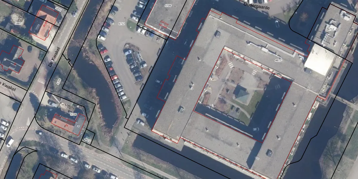 Oudergaarde 1-150 is gelegen op kadastraal perceel KTH00B4877. Deze kadastrale aanduiding is uniek en wordt gebruikt door het Kadaster om eigendomsrechten en andere zakelijke rechten vast te leggen. Het perceel maakt onderdeel uit van de kadastrale gemeente Kortenhoef.