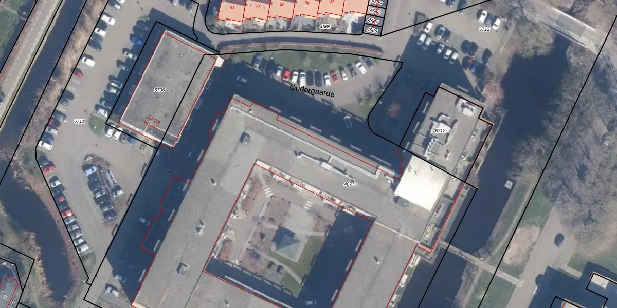 Het perceel waarop Oudergaarde 1-209 staat heeft een oppervlakte van 9365 m². Dit is een zeer groot perceel. De perceeloppervlakte wordt geregistreerd door het Kadaster. Gedetailleerde informatie over de maten van dit perceel kunt u vinden in het rapport Kadastrale kaart met maatvoering van Oudergaarde 1-209.