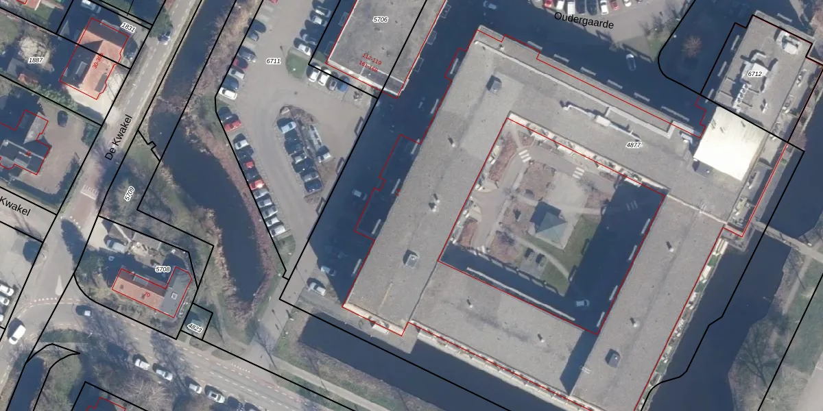 Oudergaarde 1-238 is gelegen op kadastraal perceel KTH00B4877. Deze kadastrale aanduiding is uniek en wordt gebruikt door het Kadaster om eigendomsrechten en andere zakelijke rechten vast te leggen. Het perceel maakt onderdeel uit van de kadastrale gemeente Kortenhoef.