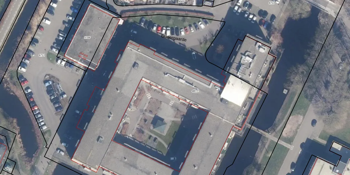Oudergaarde 1-214 is gelegen op kadastraal perceel KTH00B4877. Deze kadastrale aanduiding is uniek en wordt gebruikt door het Kadaster om eigendomsrechten en andere zakelijke rechten vast te leggen. Het perceel maakt onderdeel uit van de kadastrale gemeente Kortenhoef.
