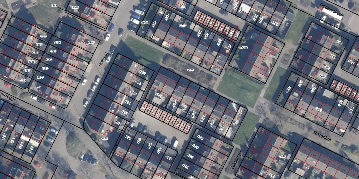 Het perceel waarop Rozenhof 6 staat heeft een oppervlakte van 122 m². Dit is een middelgroot perceel. De perceeloppervlakte wordt geregistreerd door het Kadaster. Gedetailleerde informatie over de maten van dit perceel kunt u vinden in het rapport Kadastrale kaart met maatvoering van Rozenhof 6.