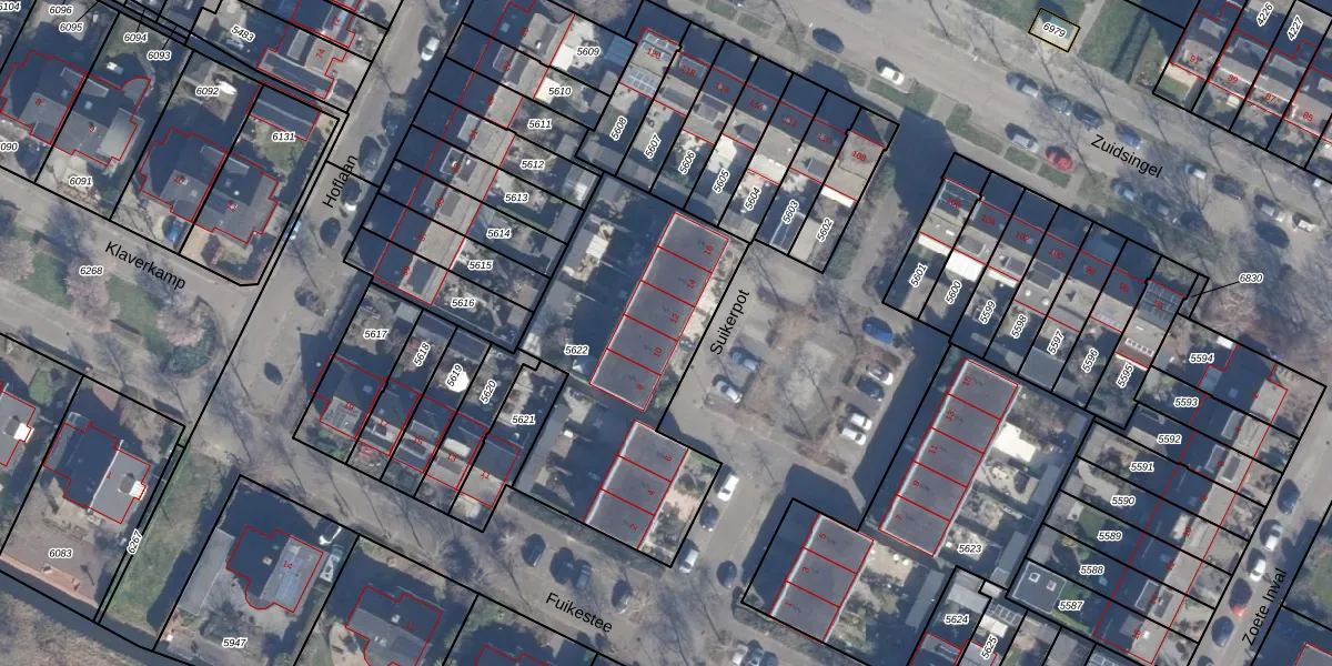 Het perceel waarop Suikerpot 12 staat heeft een oppervlakte van 1207 m². Dit is een zeer groot perceel. De perceeloppervlakte wordt geregistreerd door het Kadaster. Gedetailleerde informatie over de maten van dit perceel kunt u vinden in het rapport Kadastrale kaart met maatvoering van Suikerpot 12.