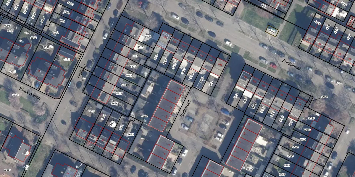 Het perceel waarop Suikerpot 16 staat heeft een oppervlakte van 1207 m². Dit is een zeer groot perceel. De perceeloppervlakte wordt geregistreerd door het Kadaster. Gedetailleerde informatie over de maten van dit perceel kunt u vinden in het rapport Kadastrale kaart met maatvoering van Suikerpot 16.