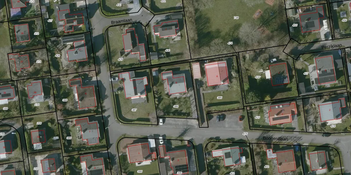 Boogerdlaan 8 is gelegen op kadastraal perceel KGN00K386. Deze kadastrale aanduiding is uniek en wordt gebruikt door het Kadaster om eigendomsrechten en andere zakelijke rechten vast te leggen. Het perceel maakt onderdeel uit van de kadastrale gemeente Kortgene.