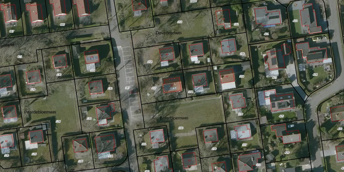 Het perceel waarop Boterbloemwei 52 staat heeft een oppervlakte van 432 m². Dit is een groot perceel. De perceeloppervlakte wordt geregistreerd door het Kadaster. Gedetailleerde informatie over de maten van dit perceel kunt u vinden in het rapport Kadastrale kaart met maatvoering van Boterbloemwei 52.