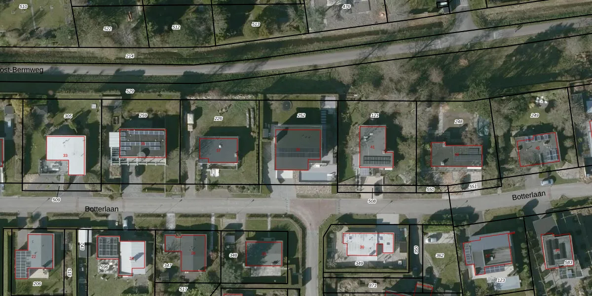 Het perceel waarop Botterlaan 39 staat heeft een oppervlakte van 758 m². Dit is een groot perceel. De perceeloppervlakte wordt geregistreerd door het Kadaster. Gedetailleerde informatie over de maten van dit perceel kunt u vinden in het rapport Kadastrale kaart met maatvoering van Botterlaan 39.