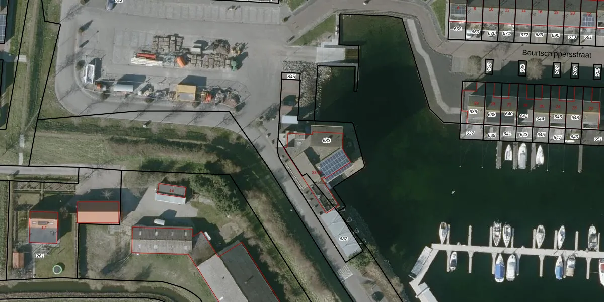 Het perceel waarop Havenweg 24 staat heeft een oppervlakte van 608 m². Dit is een groot perceel. De perceeloppervlakte wordt geregistreerd door het Kadaster. Gedetailleerde informatie over de maten van dit perceel kunt u vinden in het rapport Kadastrale kaart met maatvoering van Havenweg 24.