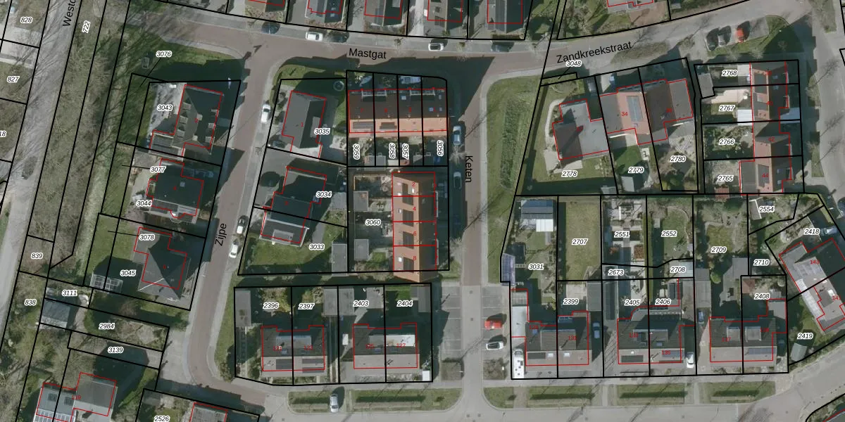 Het adres ligt op het perceel KGN00-F-3060, dat zich in de kadastrale gemeente Kortgene bevindt. Het perceel is 592 m² groot. Dat is kleiner dan de gemiddelde perceeloppervlakte in Kortgene, dat op 1,3 ha ligt. Het kleinste perceel in de kadastrale gemeente is 0 m² groot. De grootste perceeloppervlakte is 21,63 km². Er zijn 4 adressen aanwezig op het perceel. De huidige grenzen van het perceel zijn digitaal in de Basisregistratie Kadaster (BRK) geregistreerd op 05-10-2012.