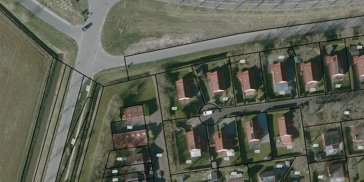 Klaprooswei 9 is gelegen op kadastraal perceel KGN00K644. Deze kadastrale aanduiding is uniek en wordt gebruikt door het Kadaster om eigendomsrechten en andere zakelijke rechten vast te leggen. Het perceel maakt onderdeel uit van de kadastrale gemeente Kortgene.