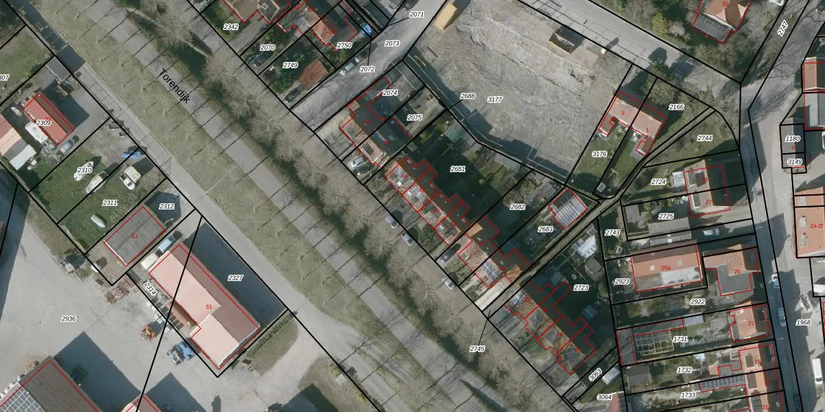 Het perceel waarop Torendijk 42 staat heeft een oppervlakte van 722 m². Dit is een groot perceel. De perceeloppervlakte wordt geregistreerd door het Kadaster. Gedetailleerde informatie over de maten van dit perceel kunt u vinden in het rapport Kadastrale kaart met maatvoering van Torendijk 42.