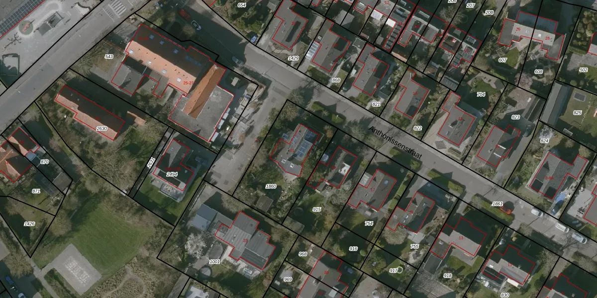Het perceel waarop Anthonissenstraat 21 staat heeft een oppervlakte van 729 m². Dit is een groot perceel. De perceeloppervlakte wordt geregistreerd door het Kadaster. Gedetailleerde informatie over de maten van dit perceel kunt u vinden in het rapport Kadastrale kaart met maatvoering van Anthonissenstraat 21.