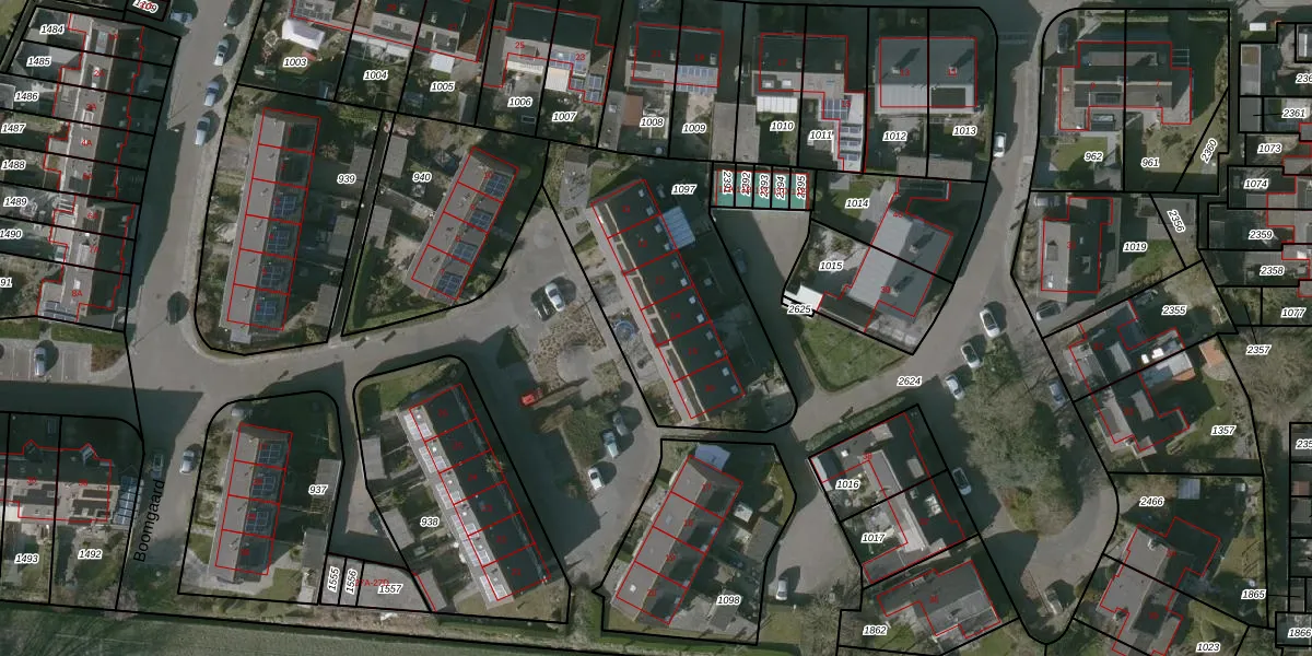 Het perceel waarop Boomgaard 14 staat heeft een oppervlakte van 965 m². Dit is een groot perceel. De perceeloppervlakte wordt geregistreerd door het Kadaster. Gedetailleerde informatie over de maten van dit perceel kunt u vinden in het rapport Kadastrale kaart met maatvoering van Boomgaard 14.