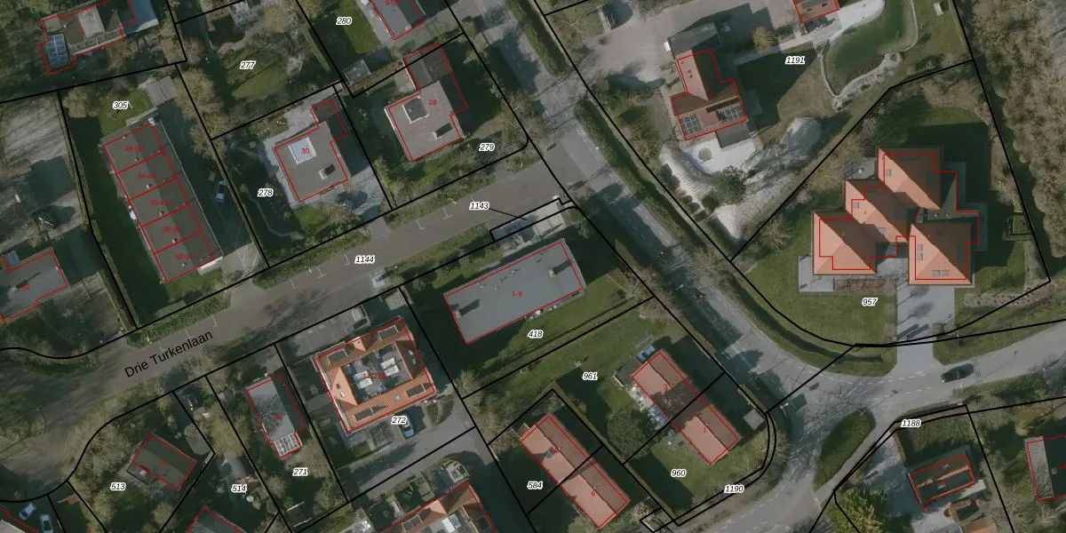 Het perceel waarop Drie Turkenlaan 1 staat heeft een oppervlakte van 900 m². Dit is een groot perceel. De perceeloppervlakte wordt geregistreerd door het Kadaster. Gedetailleerde informatie over de maten van dit perceel kunt u vinden in het rapport Kadastrale kaart met maatvoering van Drie Turkenlaan 1.