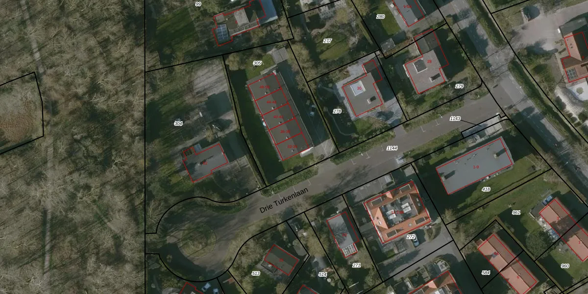 Drie Turkenlaan 34 is gelegen op kadastraal perceel VKN00M305. Deze kadastrale aanduiding is uniek en wordt gebruikt door het Kadaster om eigendomsrechten en andere zakelijke rechten vast te leggen. Het perceel maakt onderdeel uit van de kadastrale gemeente Valkenisse.