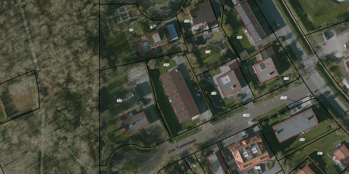 Drie Turkenlaan 46 is gelegen op kadastraal perceel VKN00M305. Deze kadastrale aanduiding is uniek en wordt gebruikt door het Kadaster om eigendomsrechten en andere zakelijke rechten vast te leggen. Het perceel maakt onderdeel uit van de kadastrale gemeente Valkenisse.