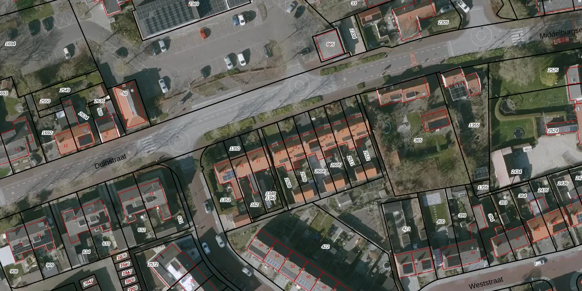 Duinstraat 13 is gelegen op kadastraal perceel VKN00H2509. Deze kadastrale aanduiding is uniek en wordt gebruikt door het Kadaster om eigendomsrechten en andere zakelijke rechten vast te leggen. Het perceel maakt onderdeel uit van de kadastrale gemeente Valkenisse.