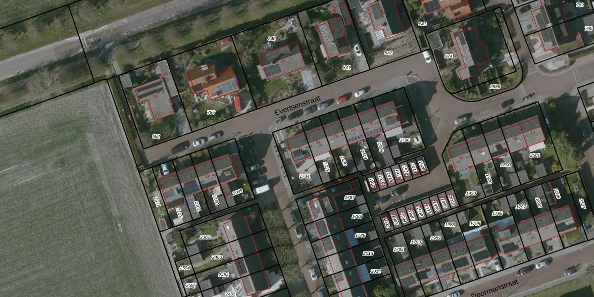 Evertsenstraat 33 is gelegen op kadastraal perceel VKN00H1784. Deze kadastrale aanduiding is uniek en wordt gebruikt door het Kadaster om eigendomsrechten en andere zakelijke rechten vast te leggen. Het perceel maakt onderdeel uit van de kadastrale gemeente Valkenisse.