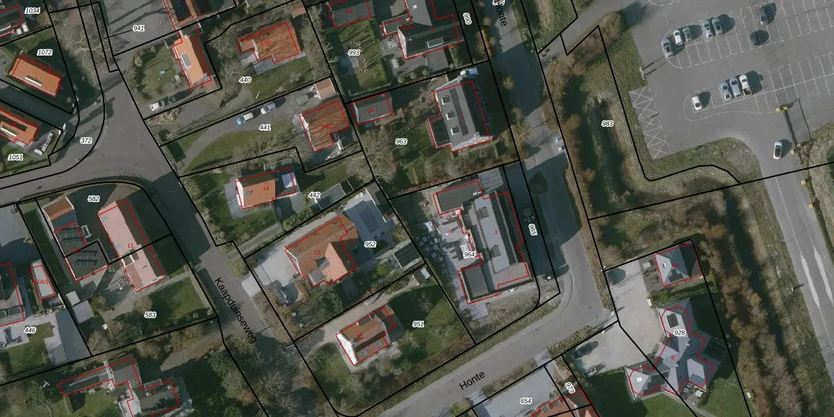 Het perceel waarop Honte 1-A staat heeft een oppervlakte van 880 m². Dit is een groot perceel. De perceeloppervlakte wordt geregistreerd door het Kadaster. Gedetailleerde informatie over de maten van dit perceel kunt u vinden in het rapport Kadastrale kaart met maatvoering van Honte 1-A.