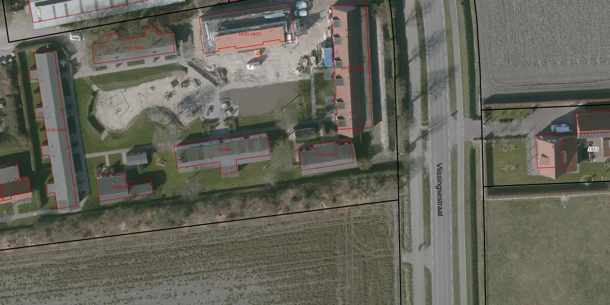 Het adres is gelegen op perceel 2911 in de sectie K en de kadastrale gemeente Valkenisse. De kadastrale aanduiding is aldus VKN00-K-2911. De oppervlakte van het perceel is 2,3 ha. Dat is groter dan gemiddeld in Valkenisse, waar de gemiddelde perceeloppervlakte op 4521,7 m² ligt. Het grootste perceel in de kadastrale gemeente is 27,3 ha. Het kleinste perceel heeft een oppervlakte van 0 m². Op het perceel liggen in totaal 42 adressen. De laatste wijziging in het de Basisregistratie Kadaster (BRK) was op 01-12-2020.