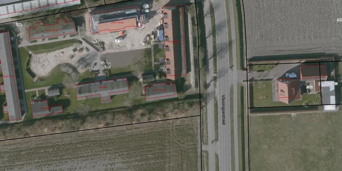 Het adres is gelegen op perceel 2911 in de sectie K en de kadastrale gemeente Valkenisse. De kadastrale aanduiding is aldus VKN00-K-2911. De oppervlakte van het perceel is 2,3 ha. Dat is groter dan gemiddeld in Valkenisse, waar de gemiddelde perceeloppervlakte op 4521,7 m² ligt. Het grootste perceel in de kadastrale gemeente is 27,3 ha. Het kleinste perceel heeft een oppervlakte van 0 m². Op het perceel liggen in totaal 42 adressen. In de Basisregistratie Kadaster (BRK) werden de grenzen van het perceel geregistreerd op 01-12-2020.