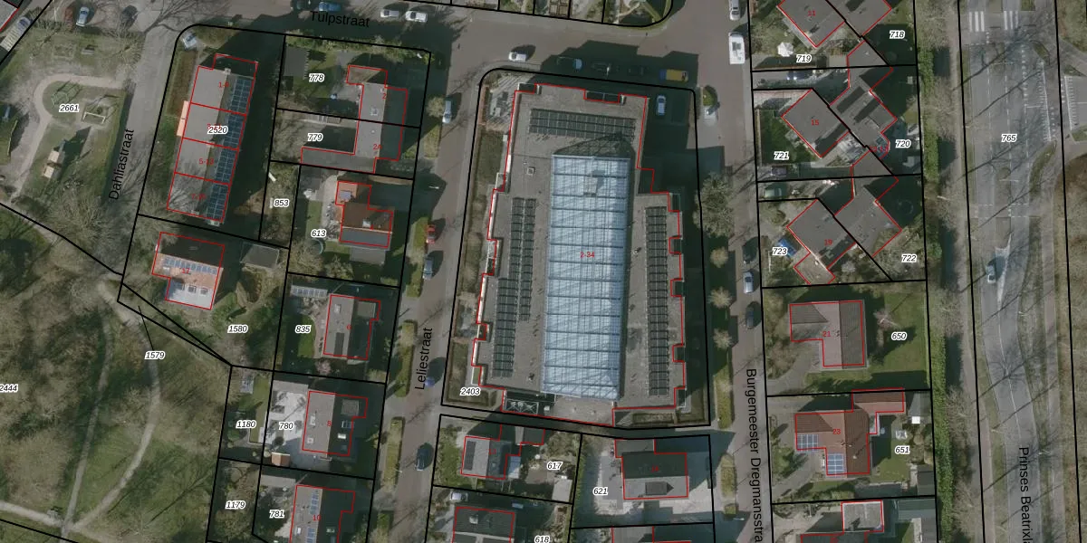 Het perceel waarop Tulpstraat 16 staat heeft een oppervlakte van 2797 m². Dit is een zeer groot perceel. De perceeloppervlakte wordt geregistreerd door het Kadaster. Gedetailleerde informatie over de maten van dit perceel kunt u vinden in het rapport Kadastrale kaart met maatvoering van Tulpstraat 16.