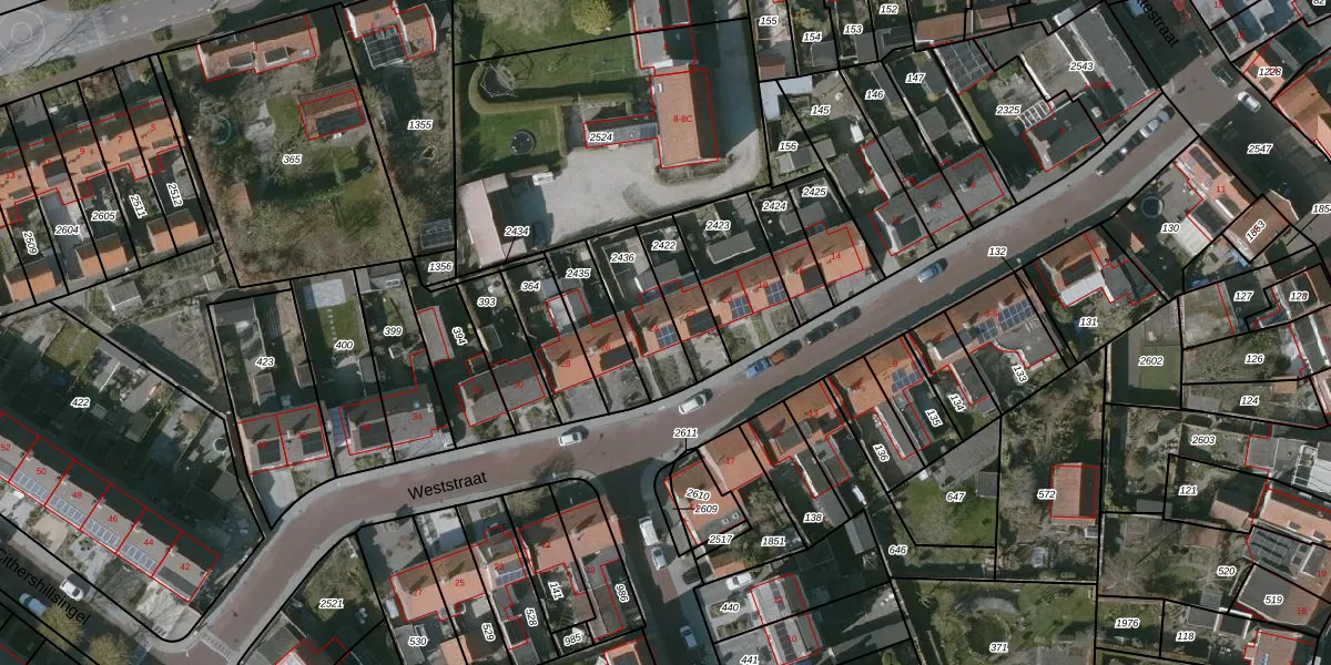 Het perceel waarop Weststraat 24 staat heeft een oppervlakte van 199 m². Dit is een middelgroot perceel. De perceeloppervlakte wordt geregistreerd door het Kadaster. Gedetailleerde informatie over de maten van dit perceel kunt u vinden in het rapport Kadastrale kaart met maatvoering van Weststraat 24.