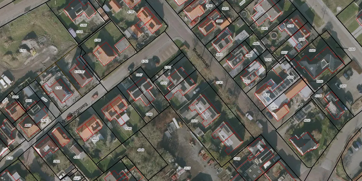 Het perceel waarop Beukenlaan 13 staat heeft een oppervlakte van 1200 m². Dit is een zeer groot perceel. De perceeloppervlakte wordt geregistreerd door het Kadaster. Gedetailleerde informatie over de maten van dit perceel kunt u vinden in het rapport Kadastrale kaart met maatvoering van Beukenlaan 13.