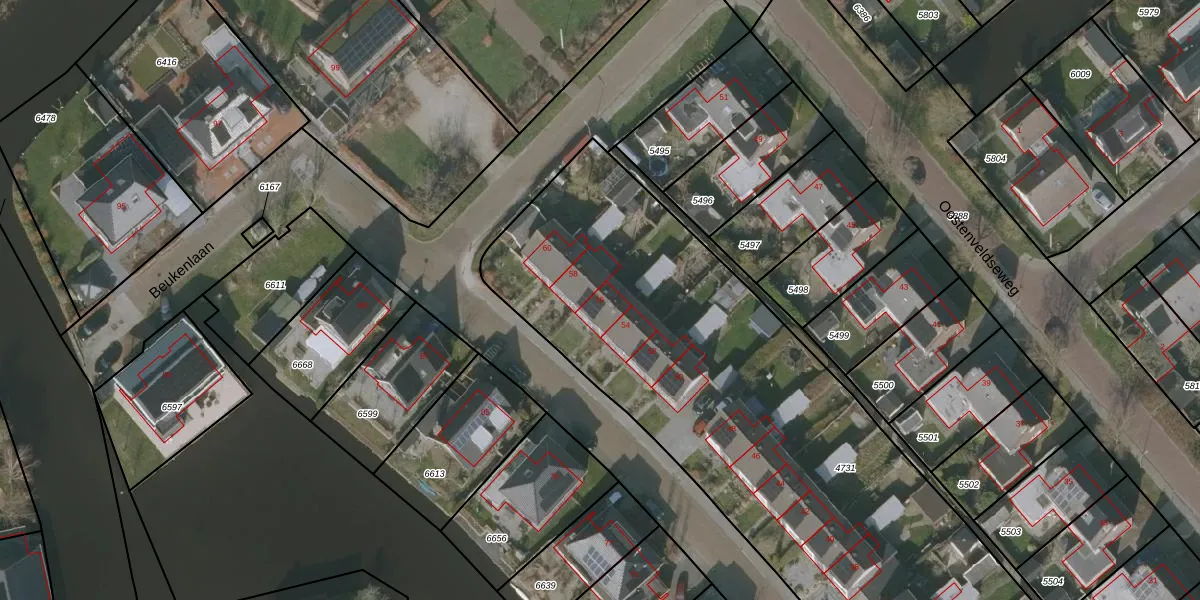 Het perceel waarop Beukenlaan 56 staat heeft een oppervlakte van 4535 m². Dit is een zeer groot perceel. De perceeloppervlakte wordt geregistreerd door het Kadaster. Gedetailleerde informatie over de maten van dit perceel kunt u vinden in het rapport Kadastrale kaart met maatvoering van Beukenlaan 56.