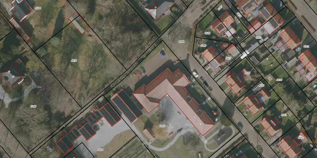 Het perceel waarop Binnendijk 13 staat heeft een oppervlakte van 3807 m². Dit is een zeer groot perceel. De perceeloppervlakte wordt geregistreerd door het Kadaster. Gedetailleerde informatie over de maten van dit perceel kunt u vinden in het rapport Kadastrale kaart met maatvoering van Binnendijk 13.