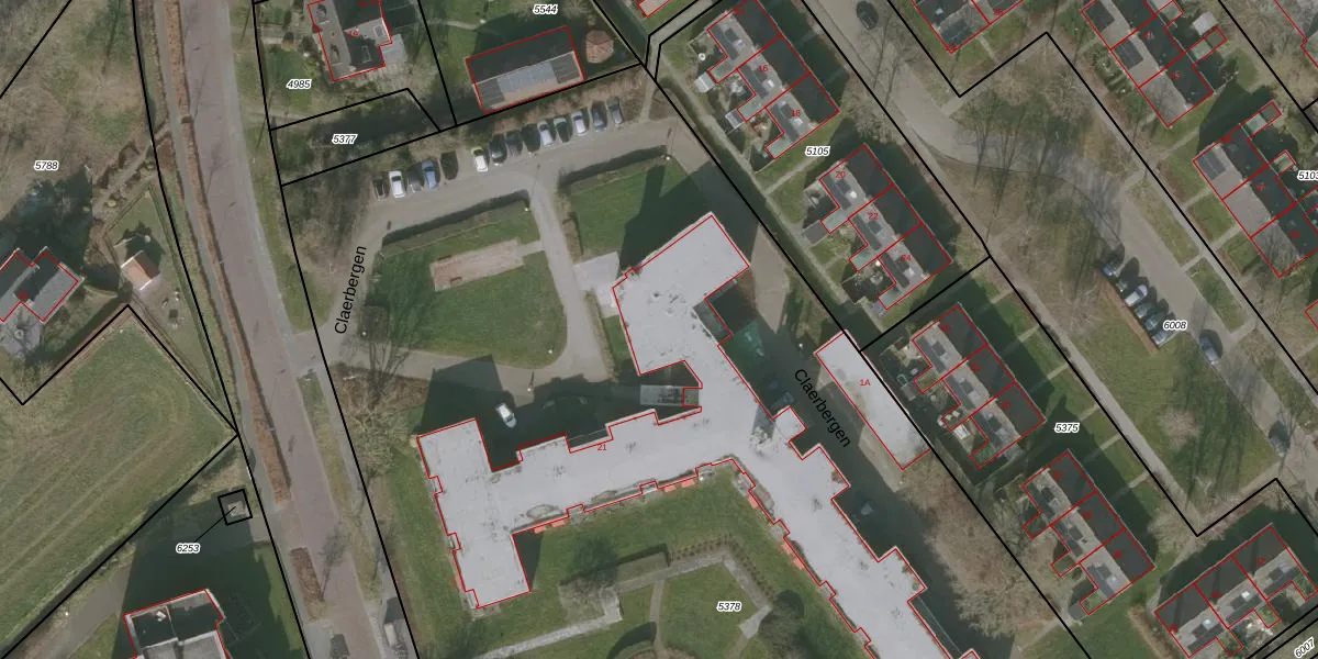 Het perceel waarop Claerbergen 2 staat heeft een oppervlakte van 1,1 ha. Dit is een zeer groot perceel. De perceeloppervlakte wordt geregistreerd door het Kadaster. Gedetailleerde informatie over de maten van dit perceel kunt u vinden in het rapport Kadastrale kaart met maatvoering van Claerbergen 2.