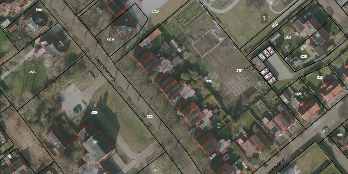 Het perceel waarop Dammenseweg 19 staat heeft een oppervlakte van 6068 m². Dit is een zeer groot perceel. De perceeloppervlakte wordt geregistreerd door het Kadaster. Gedetailleerde informatie over de maten van dit perceel kunt u vinden in het rapport Kadastrale kaart met maatvoering van Dammenseweg 19.