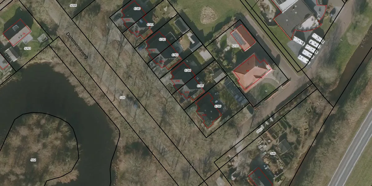 Het perceel waarop Dammenseweg 47-F staat heeft een oppervlakte van 320 m². Dit is een groot perceel. De perceeloppervlakte wordt geregistreerd door het Kadaster. Gedetailleerde informatie over de maten van dit perceel kunt u vinden in het rapport Kadastrale kaart met maatvoering van Dammenseweg 47-F.