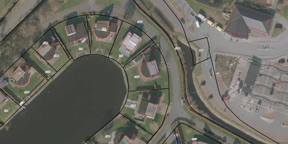 Het perceel waarop De Stringen 8 staat heeft een oppervlakte van 733 m². Dit is een groot perceel. De perceeloppervlakte wordt geregistreerd door het Kadaster. Gedetailleerde informatie over de maten van dit perceel kunt u vinden in het rapport Kadastrale kaart met maatvoering van De Stringen 8.