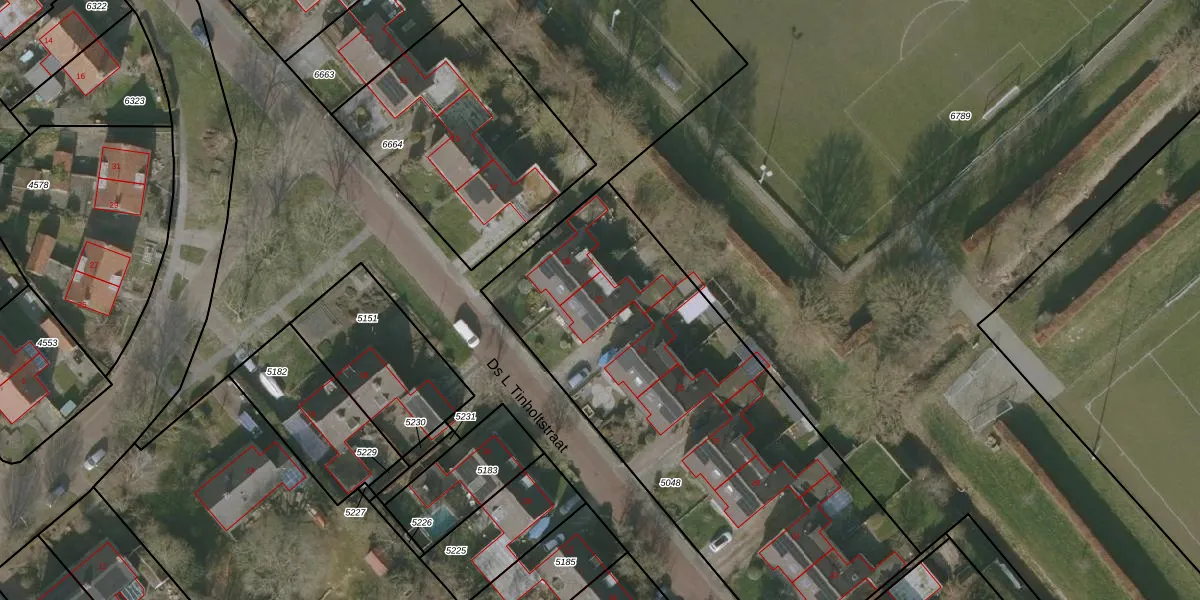Het perceel waarop Ds L Tinholtstraat 21 staat heeft een oppervlakte van 2270 m². Dit is een zeer groot perceel. De perceeloppervlakte wordt geregistreerd door het Kadaster. Gedetailleerde informatie over de maten van dit perceel kunt u vinden in het rapport Kadastrale kaart met maatvoering van Ds L Tinholtstraat 21.