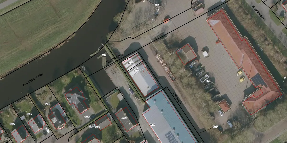 Het adres is gelegen op perceel 5962 in de sectie A en de kadastrale gemeente Koudum. De kadastrale aanduiding is aldus KDM00-A-5962. De gemiddelde perceelgrootte in Koudum is 2,0 ha. Dit perceel is kleiner: de perceeloppervlakte bedraagt 388 m². Het grootste perceel in de kadastrale gemeente is 47,97 km². Het kleinste perceel heeft een oppervlakte van 0 m². Er zijn geen andere adressen aanwezig op het perceel. De huidige grenzen van het perceel zijn digitaal in de Basisregistratie Kadaster (BRK) geregistreerd op 14-05-2002.