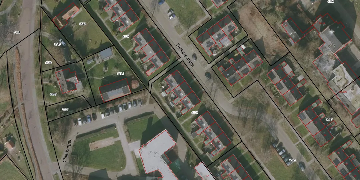 Het perceel waarop Túnkersstrjitte 16 staat heeft een oppervlakte van 1360 m². Dit is een zeer groot perceel. De perceeloppervlakte wordt geregistreerd door het Kadaster. Gedetailleerde informatie over de maten van dit perceel kunt u vinden in het rapport Kadastrale kaart met maatvoering van Túnkersstrjitte 16.