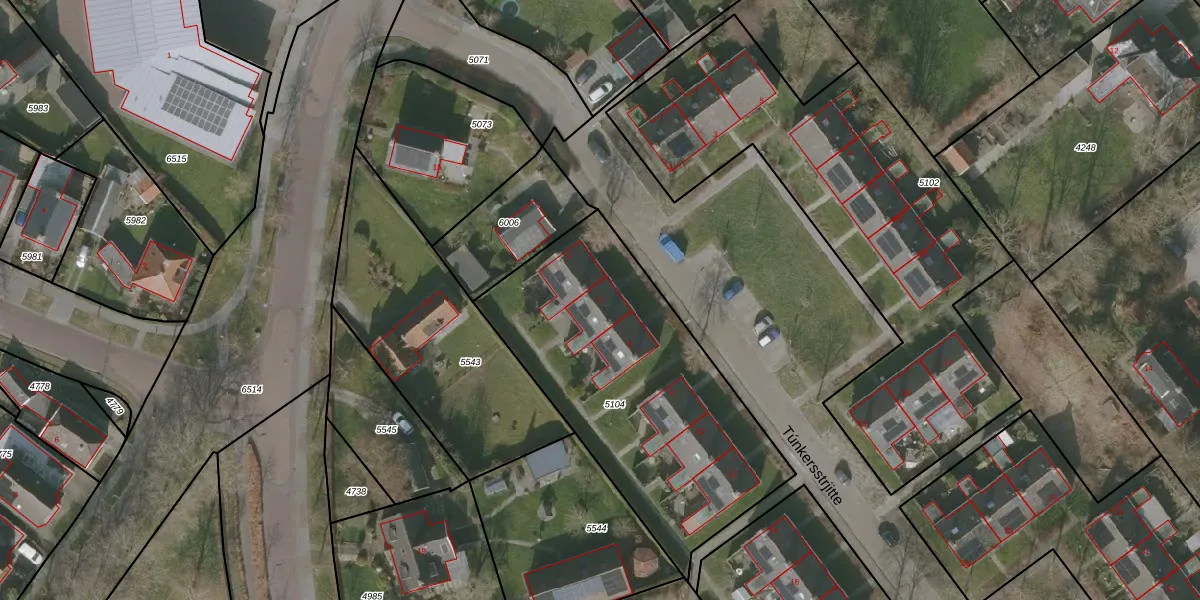 Het perceel waarop Túnkersstrjitte 4 staat heeft een oppervlakte van 1415 m². Dit is een zeer groot perceel. De perceeloppervlakte wordt geregistreerd door het Kadaster. Gedetailleerde informatie over de maten van dit perceel kunt u vinden in het rapport Kadastrale kaart met maatvoering van Túnkersstrjitte 4.